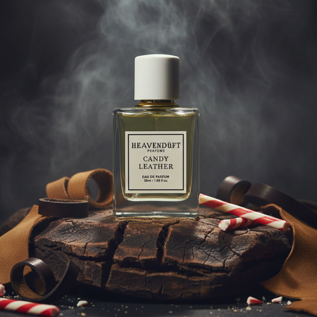 Indulge in the captivating allure of “Candy Leather,” a fragrance that seamlessly melds sweetness and sophistication.