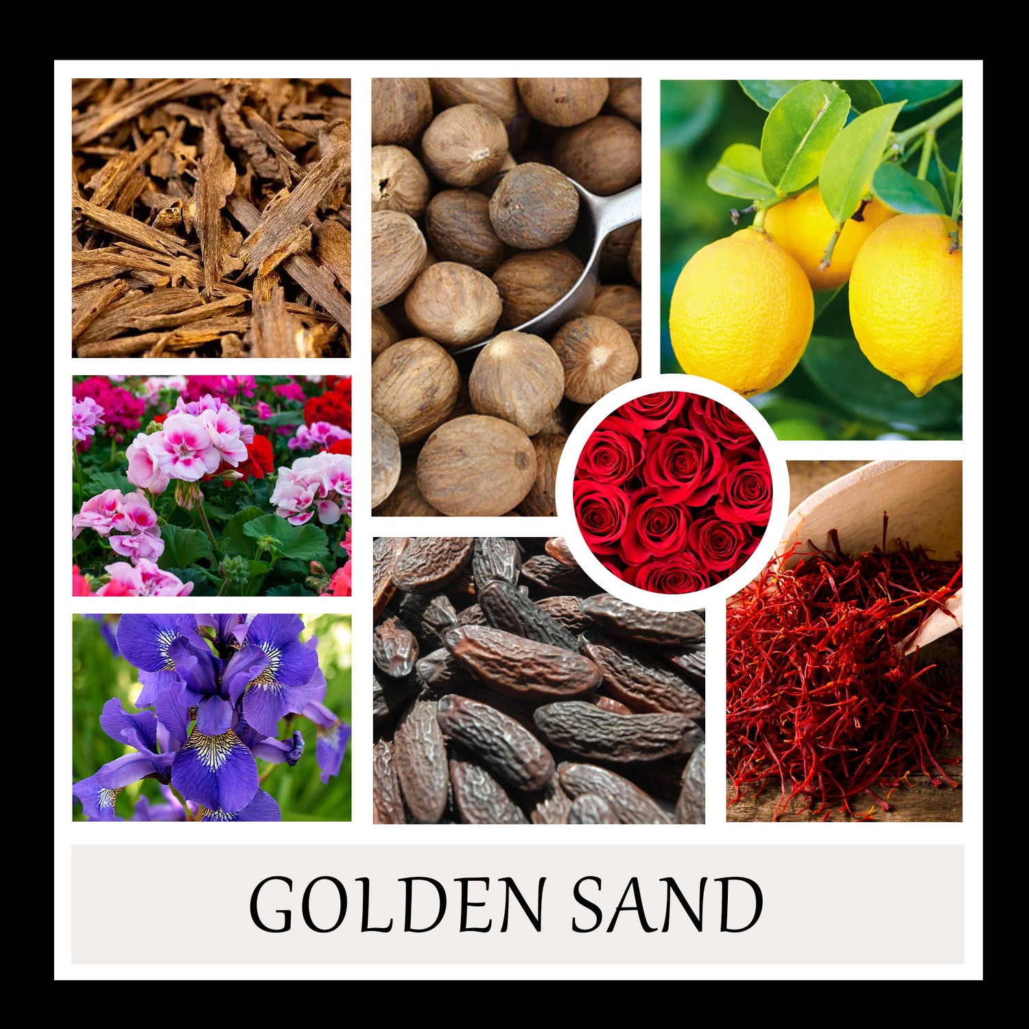 Golden Sand is a fragrance inspired by the beauty and warmth of winter. Imagine the golden hues of a winter sunset, the comforting warmth of a crackling fire, and the cozy atmosphere of a snowy landscape. This scent captures the essence of those winter moments, offering a comforting and inviting olfactory experience.