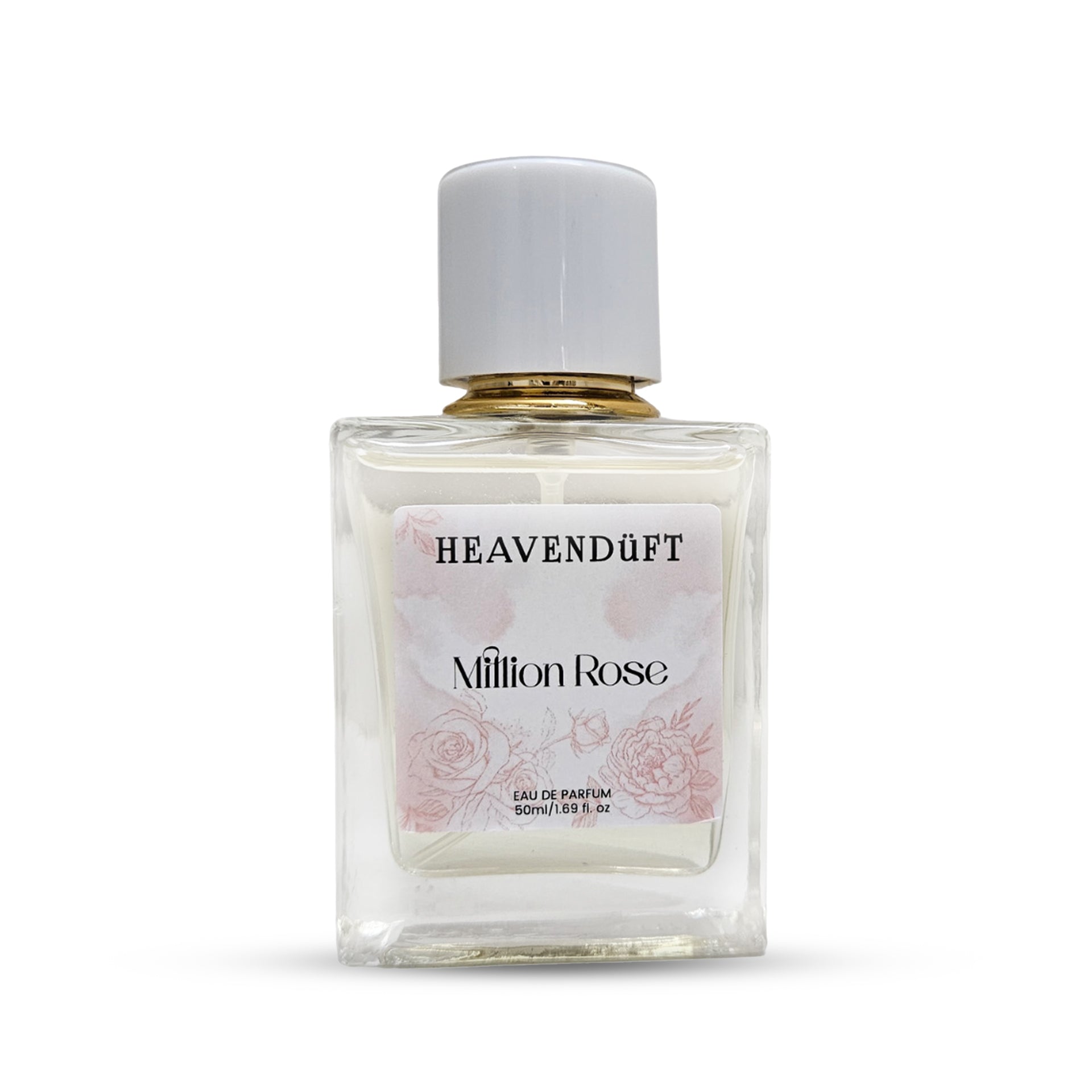 Indulge in the opulent scent of Million Rose, a luxurious perfume that embodies the essence of a lush rose garden. This sophisticated fragrance unfolds with top notes of crisp bergamot and juicy apple, leading to a heart of velvety rose petals. As the scent evolves, rich resins and smooth woods add depth and warmth, while sensual musk and creamy sandalwood envelop the senses. Base notes of sweet vanilla and golden amber linger on the skin, leaving a lasting trail of elegance and refinement. With its intricate blend of floral, fruity, and woody notes, Million Rose is a truly captivating perfume that makes you feel like a million bucks